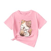 Magliette Personalizzate con Gatti Carini per Ragazze, T-shirt Bubble Tea, Magliette per Bambini con Stampe di Animali Kawaii, Top Estivi in Cotone