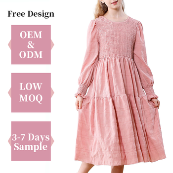 Çocuklar elbiseler yeni varış moda stil kız Retro abiye uzun kollu Crewneck katı elbise için 5-13 yıl