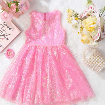 Kızlar için payetler elbise kolsuz pembe yaz doğum günü elbise resmi parti abiye toptan
