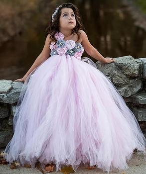 Zarif çiçek kız elbise düğün parti için el yapımı uzun Tutu elbise renkli doğum günü kız prenses elbiseler