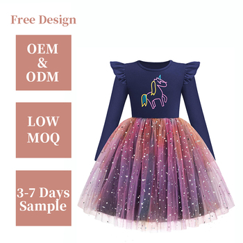 Çocuklar doğum günü elbise uzun kollu Unicorn desen yıldız Sequins kış kız elbiseler noel zarif parti elbiseler